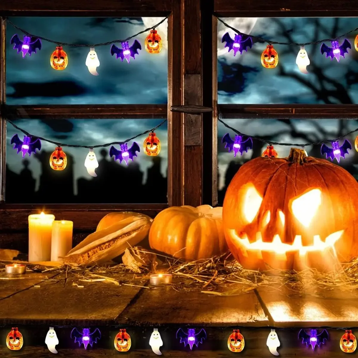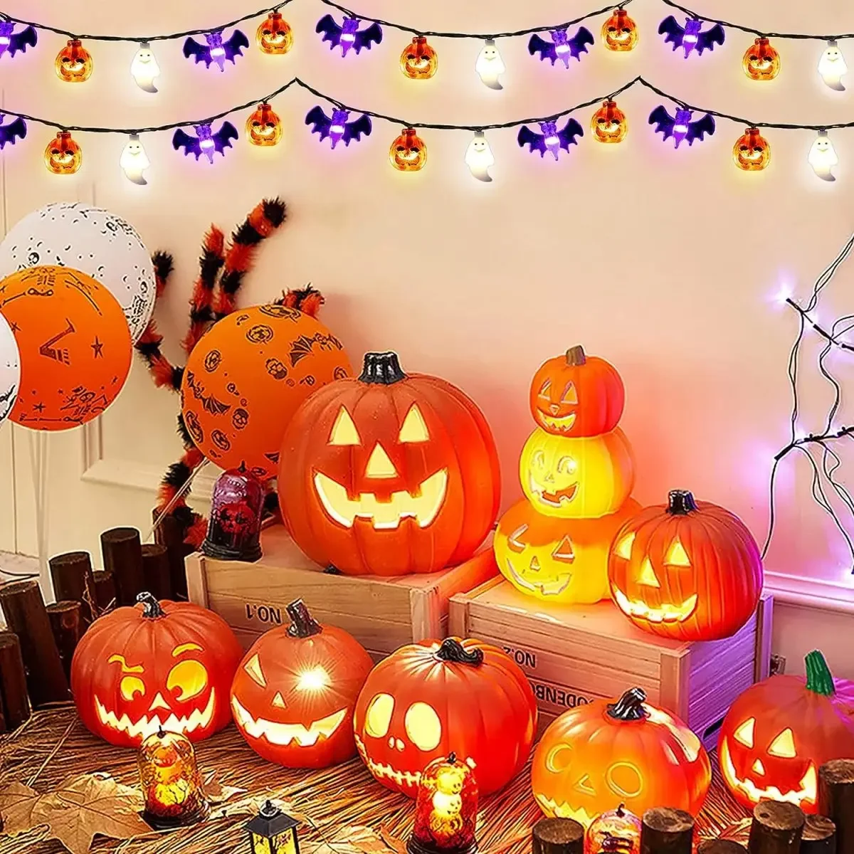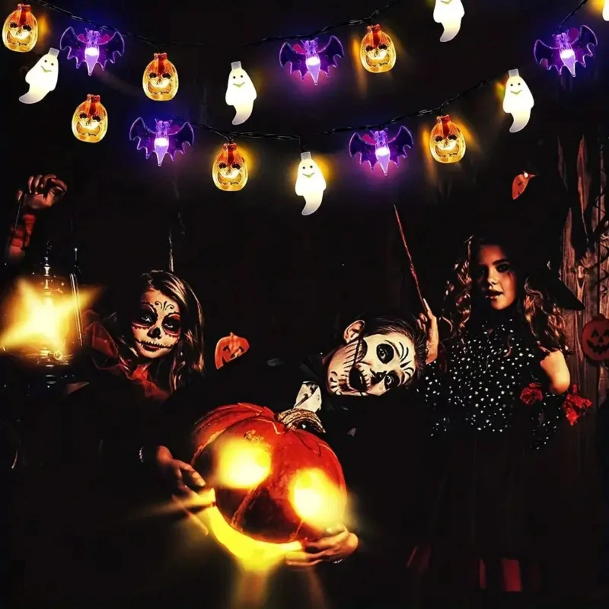 1pc Halloween String Light With Halloween Bat Ghost Pumpkin Horror Atmosphere Decorative Lamp For Home Garden Holiday Decoration