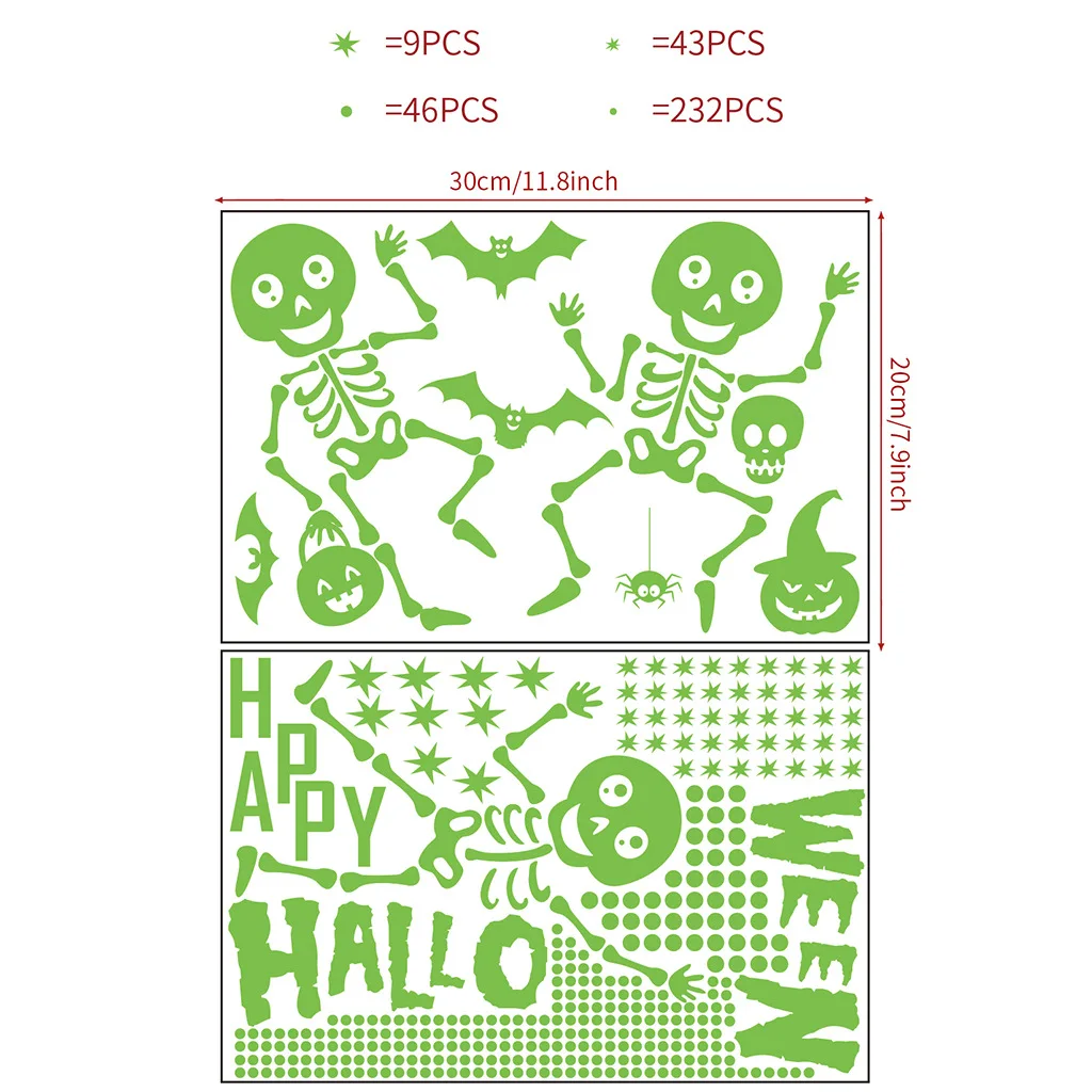 Horror Spooky Ghost Wall Stickers Glow In The Dark Skull Window Sticker Halloween Scary Decoration Luminous Room Decor